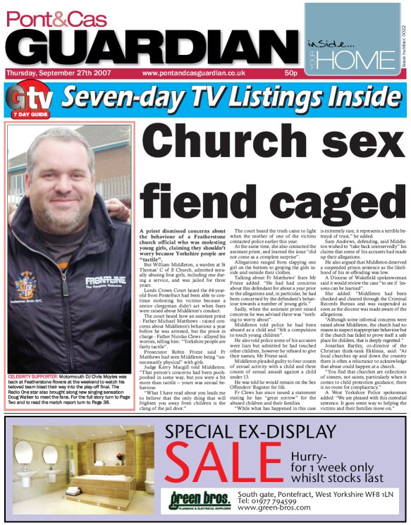 A couple of weeks ago the team were discussing the front page of the Pontefract and Castleford Guardian and a picture which was published after Chris had visited The Chris Moyles Stadium.