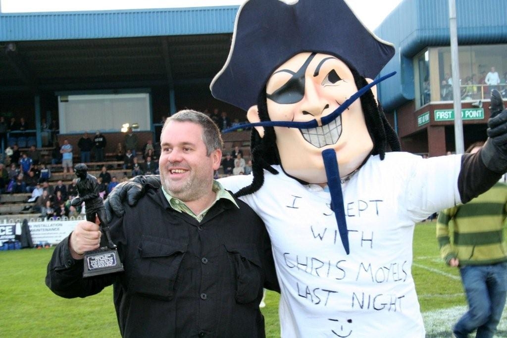 Below you can see a couple of shots taken when Chris and the team recently visited the stadium to watch Featherstone Rovers play Salford. As discussed on the show a short while ago, Bluebeard the team mascot really could have worked harder on the spelling. As Chris put it, "Bluebeard works at The Chris Moyles Stadium and walks past a great big sign everyday that says The Chris Moyles Stadium, but STILL got my name wrong!"