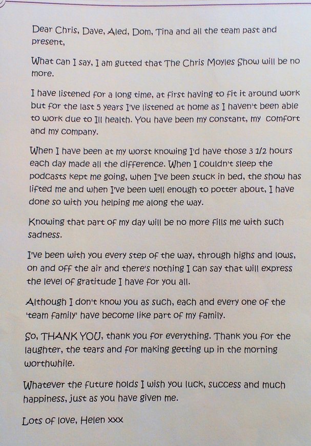 Dear Moyles and the rest of the show,